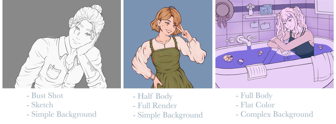 - Please have references or photos!! I have a very difficult time drawing without them, and this will make it much easier for me to give you what you want. ෆ˙ᵕ˙ෆ3) I'll send you the sketches/drafts of the artwork.